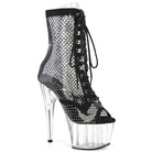 Peep Toe Lace-Up Front Ankle Boot Featuring AB Rhinestones Mesh Fabric