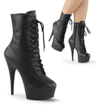 6" (15.2cm) Stiletto Heel, 1 3/4" (4.5cm) Platform Lace-Up Ankle Boot, Inner Side Zip Closure.