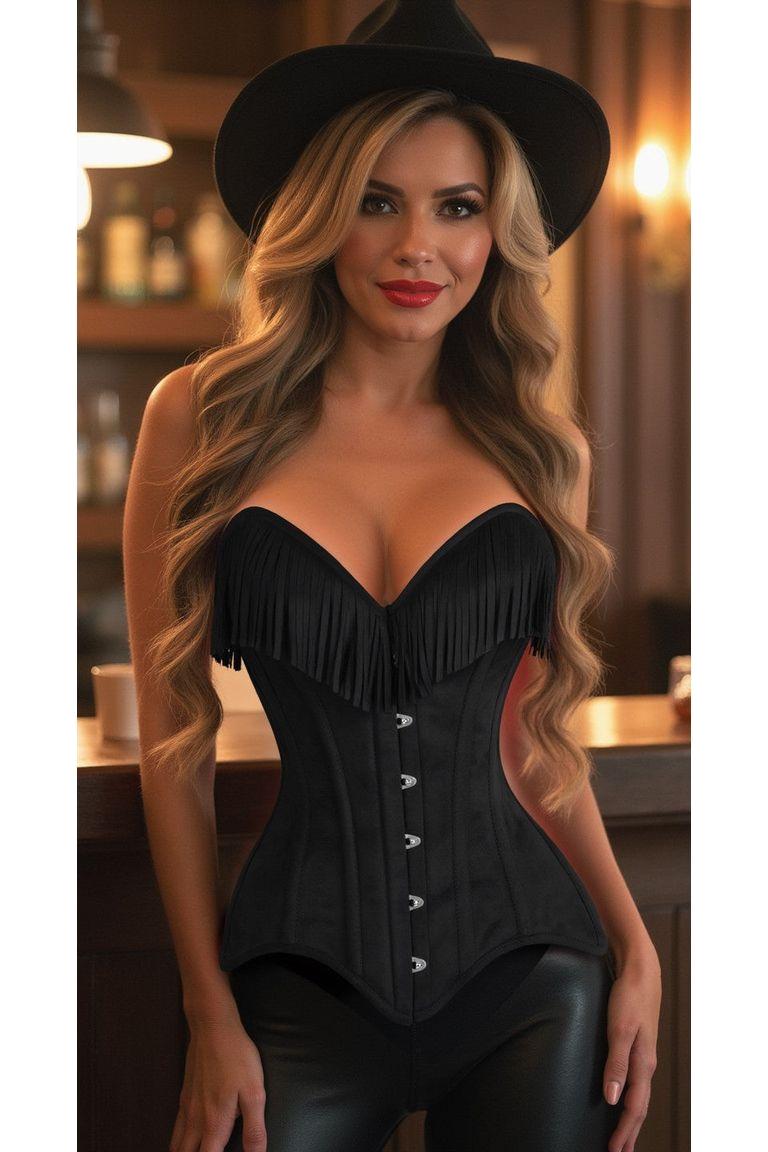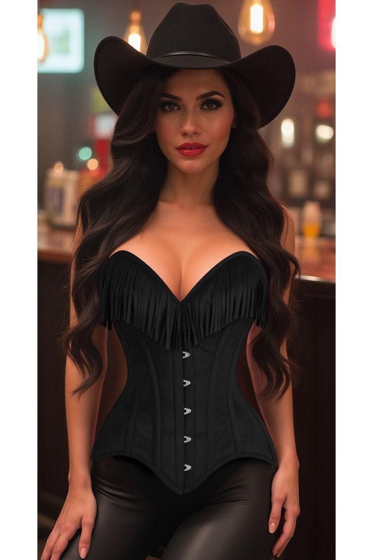 Daisy Corset Black Suede Steel Boned Overbust Corset w/Fringe