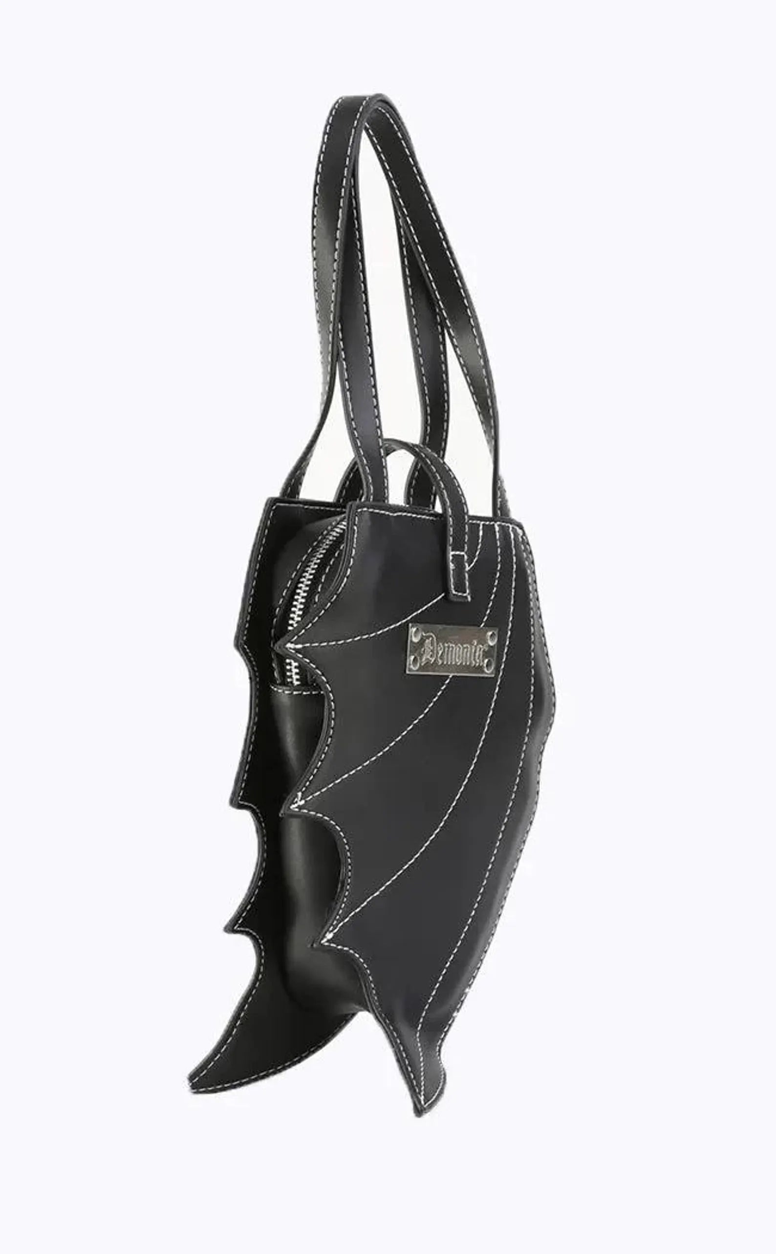 Experience the thrill of the night with this stunning Demonia HB-215 Faux Leather Batwing Handbag! Featuring intricate white stitch detailing and a uniquely shaped design, this handbag is perfect for adding a touch of edge to any outfit. Whether you're heading to a spooky event or the office, this statement piece is sure to garner attention and inspire you to take bold fashion risks!
