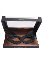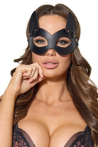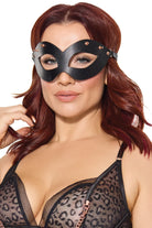 Transform into a daring kitty with the Feline Fatale Mask. The adjustable elastic strap ensures a comfortable fit, while the removable ears add versatility to your look. Featuring metal grommet details and an embossed logo, this mask will elevate any costume or playtime.