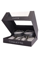Experience ultimate luxury and sensuality with our Gunmetal Glam Handcuffs. Made from adjustable 1" (2.54cm) wide cuffs, these cuffs feature a removable chain and buckle closure for added flexibility and excitement. Embossed with the logo, the total cuff length is 10 1/2" (26.7 cm) with a chain length of 8" (20.3 cm). Perfect for wrist sizes up to 6 1/2" (16.5 cm).