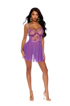 Elevate your allure with the Elegant Moments Embroidered Mesh Babydoll, designed to captivate from every angle. Featuring delicately embroidered mesh and supportive underwire cups, this piece enhances your silhouette while teasing with intricate strappy front details. Adjustable straps and a hook-and-eye back closure ensure a flawless fit, empowering you with confidence and comfort. Complete with a matching g-string, this daring ensemble invites you to embrace your boldest, most seductive moments. Perfect for turning up the heat and making an unforgettable impression.