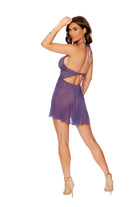 Scalloped Lace Halter Babydoll With Underwire Cups Set Turn heads with this audacious halter babydoll that commands attention from every angle. Delicate scalloped lace drapes across underwire cups designed to flatter and support, while the daring strappy front detail adds an edge of intrigue. The provocative front slit teases with every movement, and the back tie closure offers an adjustable fit that hugs your curves just right. Crafted for those who aren't afraid to embrace their sensuality, this piece combines elegance with bold confidence. The matching g-string completes the set, ensuring you're ready for whatever the night brings. Perfect for intimate moments or making a statement under sheer clothing.