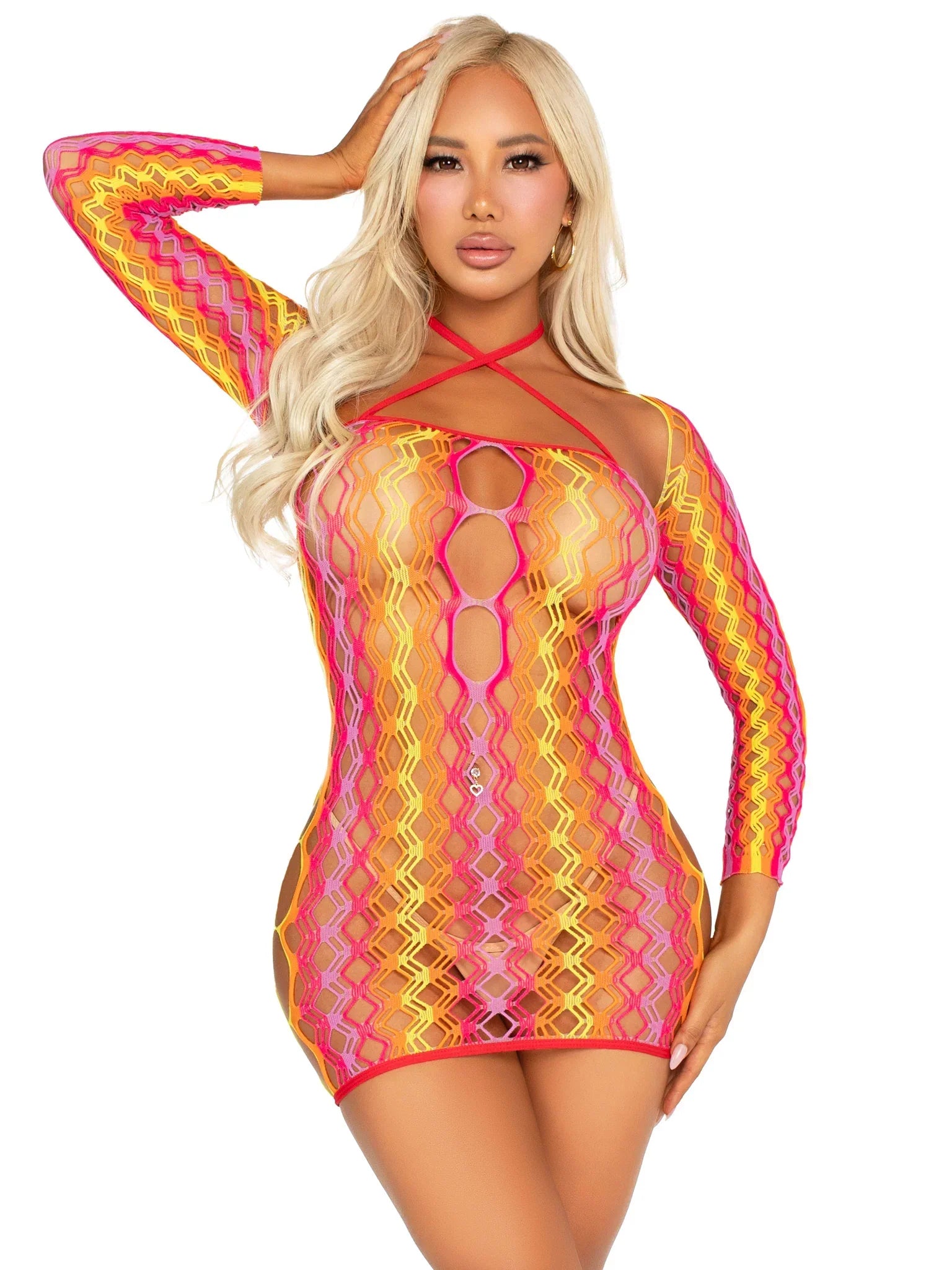 Leg Avenue Not Sorry Rainbow Net Dress