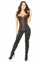 Daisy Brown Brocade & Faux Leather Steel Boned Corset TD-337