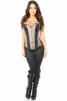 Daisy Gunmetal Brocade & Faux Leather Steel Boned Corset TD-342