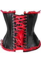 Daisy Black Faux Leather & Red Lace Trim Steel Boned Corset