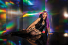 Front to back 2-way metal zipper with hook & eye reinforcement metal ring and rivet details. Booty short cut.