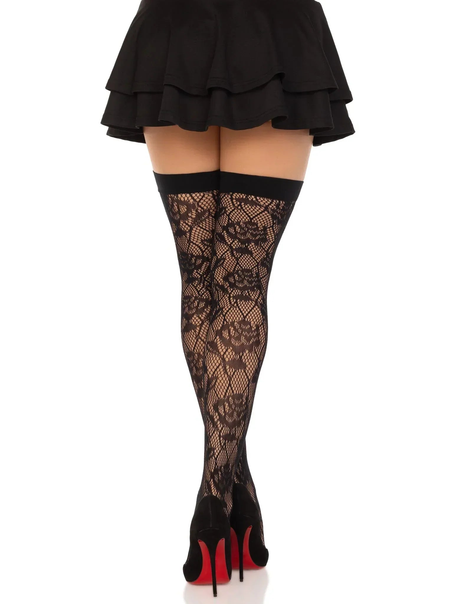 Showcase your flirty style by adding these floral thigh high stockings by Leg Avenue to your wardrobe. Comfort is key when it comes to thigh highs, so we designed these stretchy fishnet stockings to be on call day and night. The stunning rose detail and diamond pattern pairs perfectly with sexy lingerie or date night outfits.
