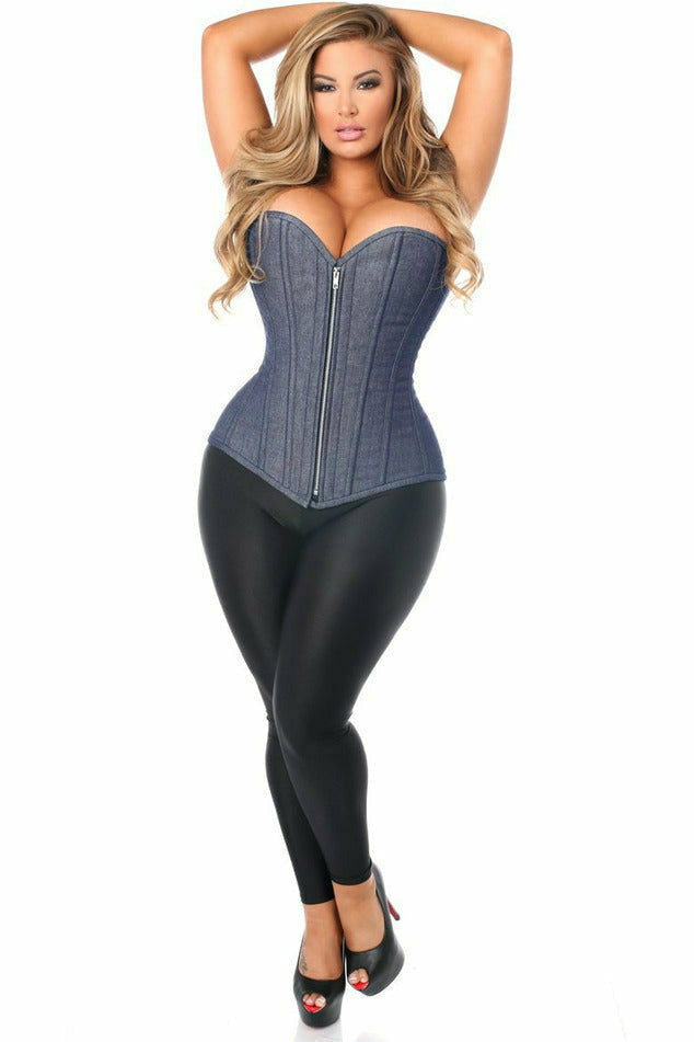 Daisy Denim Blue Steel Boned Overbust Corset w/Zipper TD-282