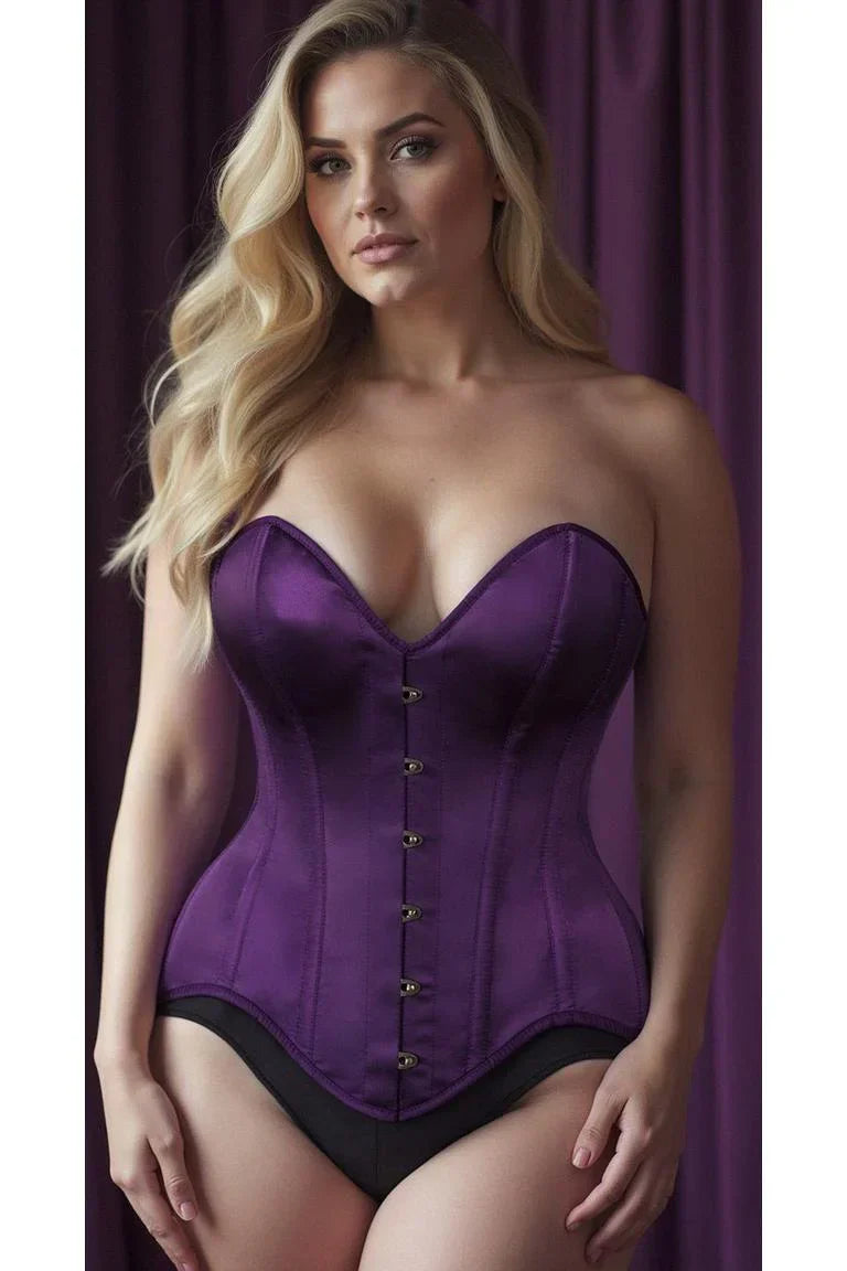 *Daisy TD-209 Dark Purple Satin Steel Boned Overbust Corset