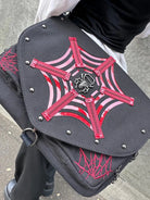 Unleash your inner-arachnid with the Demonia Kapara Messenger Bag. This canvas bag features bold red spider webs, sure to make a statement. With a spider in the centre, this bag is perfect for anyone who loves things macabre. With plenty of room for all your essentials, this bag is a triple threat of functionality, style, and attitude!