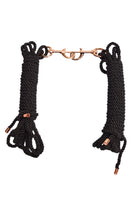 Elevate your rope play with our Pair of Ropes. With a silky smooth texture and secure metal leash clips and cap details, these 16' long ropes offer endless possibilities for shibari designs. At 1/4" thick, they provide just the right amount of strength and flexibility.
